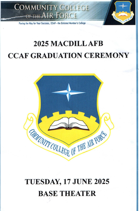 The Chapter also supports AFA’s STEM Education mission on MacDill AFB. The Chapter presents the Pitsenbarger Award to the top graduate(s) of the Community College of the Air Force (CCAF). There are two graduations per year, but MacDill typically only holds one graduation ceremony per year. the Spring top graduate, SSgt Alex Montero from Fuels, was deployed when they held the graduation ceremony. So, on December 16, 2024, Bill Yucuis presented the Pitsenbarger Award to Alex at the base Education Office. At the same time, he presented the Pitsenbarger Award to TSgt Miranda Aragon from the Security Police, who was the top Fall graduate. The Wing plans to also honor them at the next Quarterly Awards ceremony.